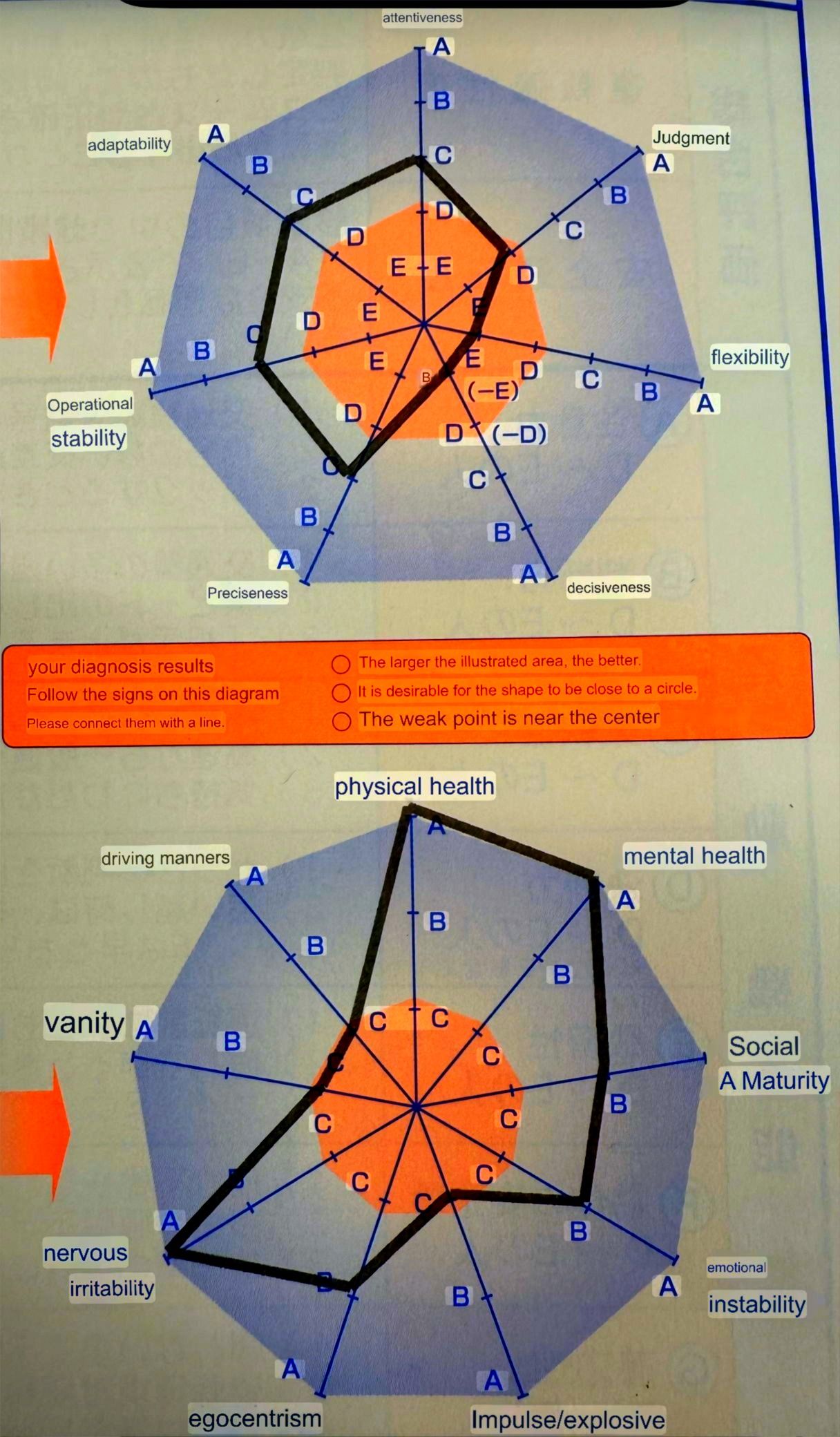 This was my personality test, although it is not 100% accurate since I made it in English with Audio in Japanese (My mother tongue is Spanish lol)